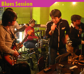 前回の初登場に引き続き出演してくれました【ブランコ】さんです。今回は現在活動中のバンドでギターを担当している相棒マッツーさんを引き連れてやってきました。この日はセミアコを持ってMuddy Watersの『I can't be satisfied』など2曲ほど演奏してくれました。ちなみに彼らのバンドが5/9(土)に高円寺のペンギンハウスというライブハウスでライブをやるそうです。ガチガチのブルースバンドということなので興味ある方は是非!僕は行くよー(・∀・)。