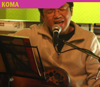 もうすっかり常連【コマ】さんです。実は今回、ヘビメタやろうって話だったんですが、コマさん以外のメンバーの準備不足(アニボーカル、みやびベース、しゅくドラム)により断念(ノ∀`)。ということで急きょフォークソング大会に。松山千春の『季節の中で』、かぐや姫の『妹』、そして同じくかぐや姫より『神田川』。定番オンパレードでございました。関係ないけどわたくし『妹』の歌詞をずっと間違えて覚えてまして、「ふすま一枚へだてて」をなぜか「たたみ一枚へだてて」だと思ってました。