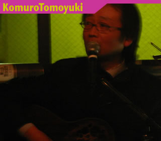 すっかりお馴染みですね。【コムロトモユキ】登場です。「今日は歌うつもりじゃなかったんだけどなぁ…」と言いつつ、さら〜っと2曲歌って、さら〜っと消えていきました。まさに「唄い逃げ」w(ご本人のブログより)。オリジナルナンバーから『少年の頃へ』、『BLUE BLUE BLUE』の2曲をご披露いただきました。最近はすっかり「ギターを持ったコムロトモユキ」スタイルですねぇ。