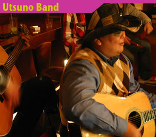 さてさて【ウツノバンド】登場…しましたっけ?一応当日の昼間も練習していたんですが…。諸事情によりアニ&ウツノ登場が遅れてターナーズにやってきたのは10時過ぎ。この日はみなさん引けが早く、その時間にはほとんど顔見知りだけ(といってももとより出演者ほとんど顔見知りですが)。しかもそれまで諸事情により近くの庄やで飲んでいたそうでアニはすでにへろへろ。とても歌える状態ではなかったので適当に1曲歌って終了。せっかくウツノさんも気合い入れて新しいハット(by Lastkingdom)かぶってきたのにねぇ。次回はしっかりやりましょう!