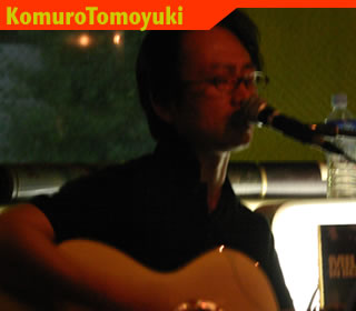 お次も常連【コムロトモユキ】登場です。今回は“唄い逃げ”ではなく、しっかりと1ステージ、オリジナルナンバーを数曲やっていただきました。今回はなにげにMC長かったような気がします(文通ネタとかw)。というか客席の一部若干3名(わたしも含む)やかましかったですね。すんませんです。ちっちゃい太鼓ならすわ、勝手にコーラスあてるわ(;´Д`)。さぞかしやりづらかったことでしょう。でもこりずにまた来てね(・∀・)。そういえば8/25(火)は江古田マーキーでライブですね。興味のあるかたは是非どうぞ!。
