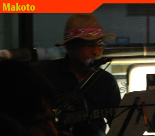 すっかりお馴染みとなってまいりました【カイ】ちゃんです。まずはピンのステージではアコギでイーグルス。そしたらブルースハープ片手にanan乱入。と思ったら間髪入れずにマイクを持ったまこっちゃん乱入。みんなここら辺の音楽好きなんですねー(・∀・)。ちなみにカイちゃん、今月あたりからしばらくアメリカに行ってくるそうです。ギターかついで渡米ですよ。なんか格好良いねぇ。ということで次回の出演は来年になるのかな。なにか向こうで得るものがあればよいね。気をつけていってらっしゃい!