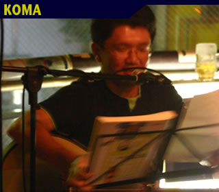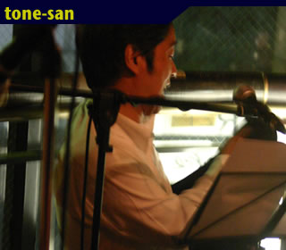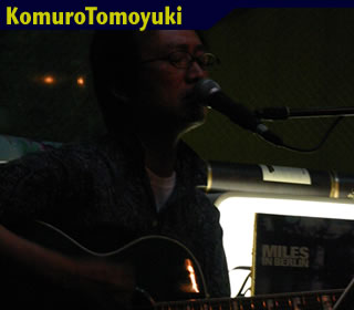 コムロトモユキの高校時代(だったかな?)のご友人【tone_sanです。コムロトモユキのステージではコーラスをやっていましたがせっかくだからということでピンのステージを。ギターの弾き語りでイーグルスの『Desperado』を披露していただきました。名曲ですねぇ>デスペ。コムロトモユキと一緒にやるのはウン十年ぶりとのこと。そんな昔の仲間と、またひょんなことから一緒に音楽やるってのも楽しいものですな。うーん、いい話だなぁ(・∀・)。僕もドラムのしゅくとはそろそろ四半世紀のつきあいになってきました。お互い歳とるよねw。